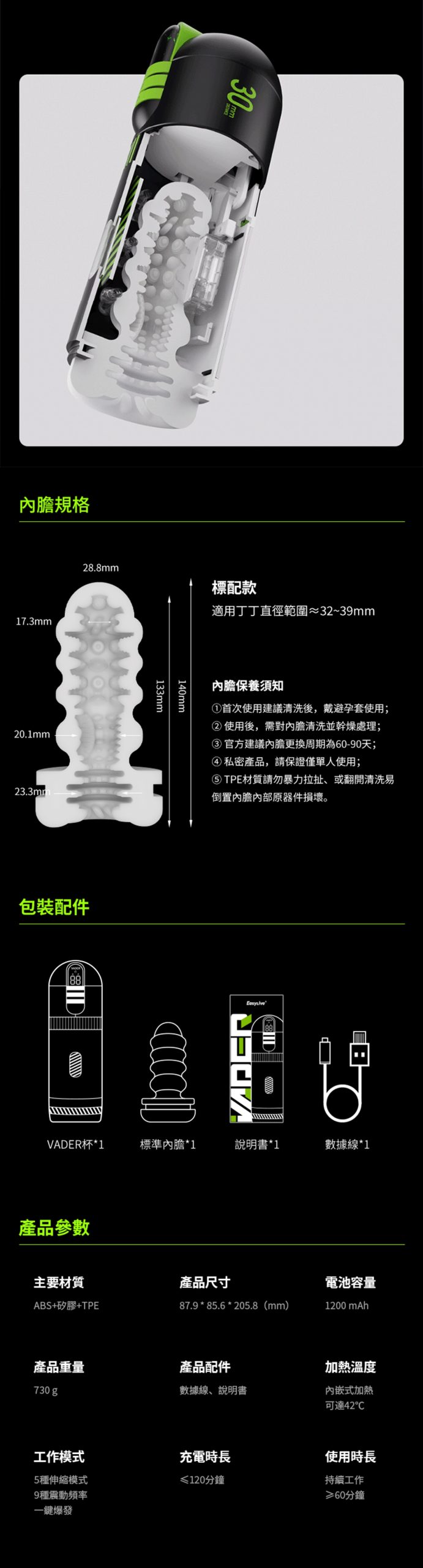 材質爲醫用級TPE,柔軟、安全、無味、無毒,已通過多項國際安全測試。使用前建議清水沖洗,使用後用中性清潔劑清洗並晾乾。避免使用硅油或酒精類清潔劑。